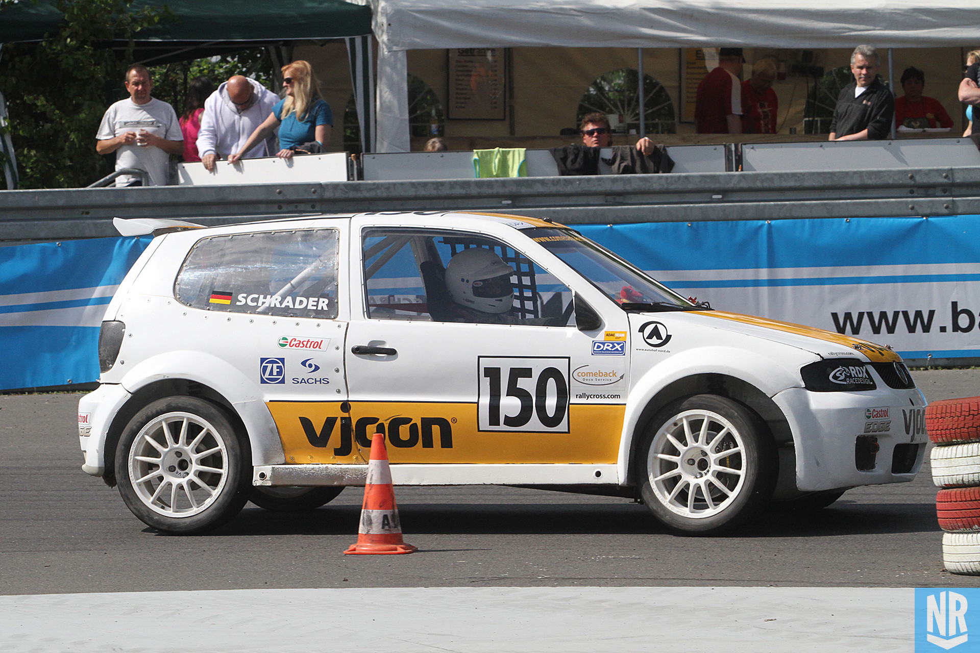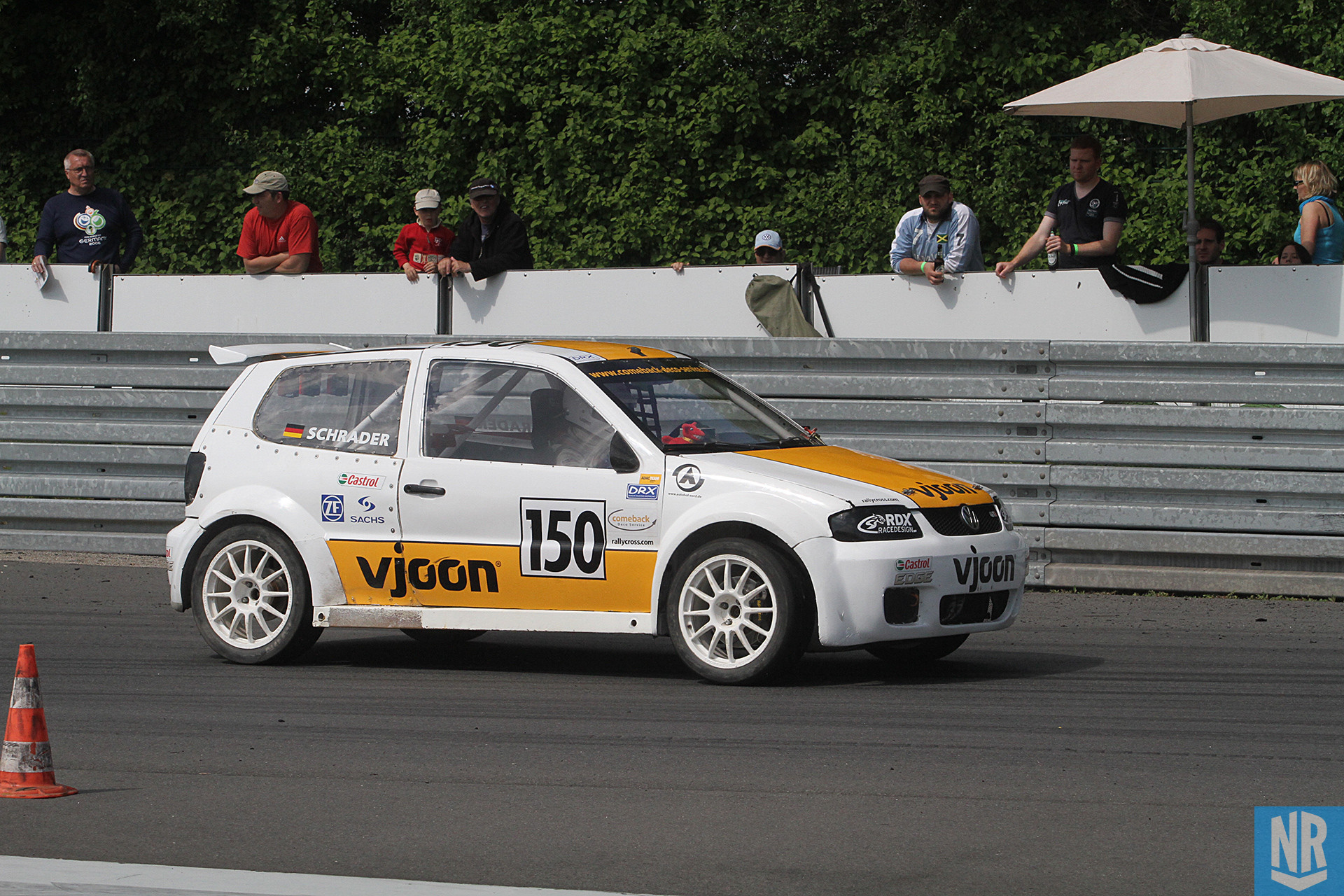 Im freien und gezeiteten Training lief es durchwachsen. „Ich verlor unheimlich viel Zeit in der Hubschrauberkurve und in der scharfen Rechtskurve kurz vor der Zielgeraden. Eigentlich rollerte der Polo um die Kurve, der Motor drehte im Begrenzer und es gab keinen Vortrieb.“ Trotzdem waren die Zeiten deutlich besser als die von Niels van de Warrenburg, der ja seine ersten Runden mit seinem neuen Auto drehte. Als dann vor dem Start auch noch Hans Kirchhoffs Porsche Blut und Wasser spuckte, glaubte Schrader an einen Heat- und Gesamtsieg.